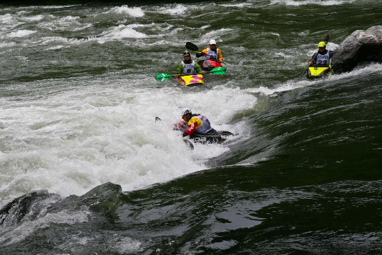 Bas Horstink aus den Niederlanden bewies Coolness, als er bei der Anmeldung erschien und erzählte, dass er seit 3 Jahren nicht mehr im Freestyleboot gesessen sei, auch kein Boot dabei habe, aber gerne starten würde. Christof und Alex stellten Boot bzw. Paddel zur Verfügung und Bas platzierte sich im Mittelfeld.